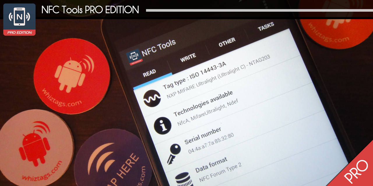 NFC Tools Pro Edition includes additional features such as profiles management and